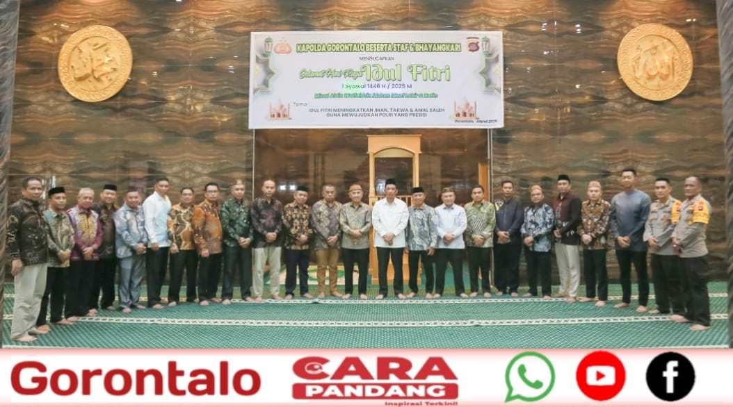 POHUWATO, CARAPANDANG - Bupati Pohuwato, Saipul A. Mbuinga, bersama Wakil Bupati, Iwan S. Adam, didampingi Ketua dan Wakil Ketua Tap. PKK Pohuwato, Selvi Mbuinga Monoarfa, dan Risnawati All, serta jajaran Pemda Pohuwato melakukan silaturahim dengan Kapolda Gorontalo pada Selasa, (01/04/2025). Selain silaturahmi dalam momen Hari Raya Idulfitri 1446 H, juga kegiatan ini sebagai bentuk dukungan kepada pejabat baru Kapolda Gorontalo.