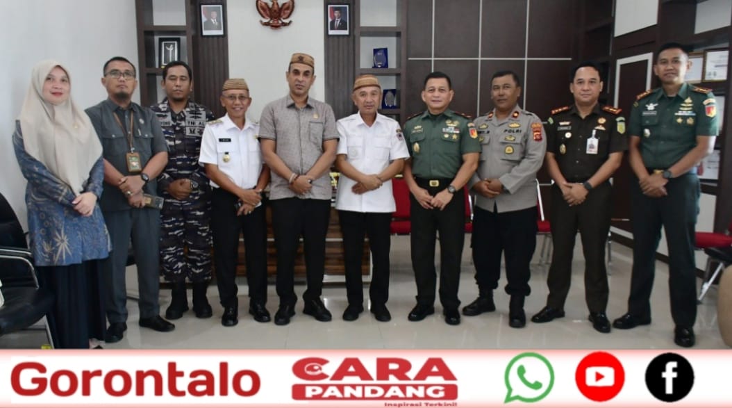 Bupati Pohuwato, Saipul A. Mbuinga, bersama Wakil Bupati Iwan S. Adam, menerima kunjungan kerja Danrem 133/Nani Wartabone, Brigjen TNI Hardo Toga Parlindungan Sihotang, Rabu, (11/06/2025), di ruang kerja Bupati Pohuwato.