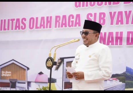 BATUSANGKAR, CARAPANDANG - Bupati Tanah Datar Eka Putra, Ketua DPRD Anton Yondra, Ketua TP PKK Ny. Lise Eka Putra beserta Wakil Ketua TP PKK Ny. Dwinanda Ahmad Fadly menghadiri peletakan batu pertama pembangunan Gedung Olahraga (GOR) oleh Pengurus Pusat Yayasan Kemala Bhayangkari di SLB Yayasan Kemala Bhayangkari (YKB), di Nagari Lubuak Jantan, Jumat (7/3/2025).