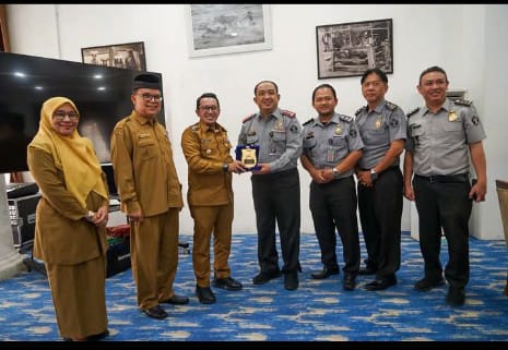 BATUSANGKAR, CARAPANDANG - Bupati Tanah Datar Eka Putra didampingi Kadis Parpora Riswandi dan Kabag Hukum Audia Safitri menyambut Kunjungan Kepala Kantor Imigrasi (Kanim) Klas I Agam Budiman Hadiwasito bersama jajaran, Senin (24/3/2025) di Indojolito Batusangkar.