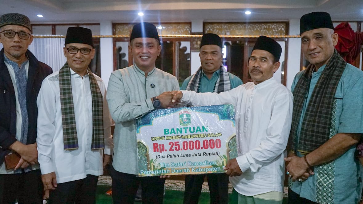 SOLOK, CARAPANDANG - Bupati Solok, Jon Firman Pandu bersama Tim Safari Ramadhan (TSR) Kabupaten Solok berkunjung ke Mesjid Darul Qarar Jorong Lubuak Salasiah Nagari Batang Barus, Jum'at (14/03/2025).
