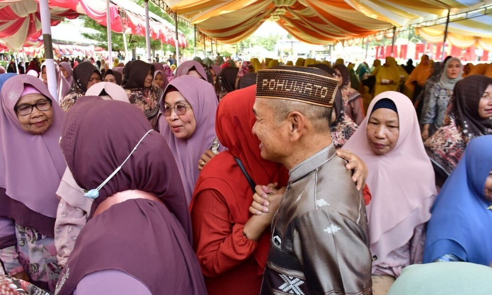 Momen haru itu bukan saja dirasakan oleh bupati, melainkan Wakil Bupati Suharsi Igirisa dan Ketua Tim Penggerak PKK Pohuwato, Selvi Mbuinga Monoarfa mendapat perlakuan yang sama pula. Di mana para ibu majelis taklim dari 6 kecamatan itu ikut memeluk keduanya sambil meneteskan air mata.