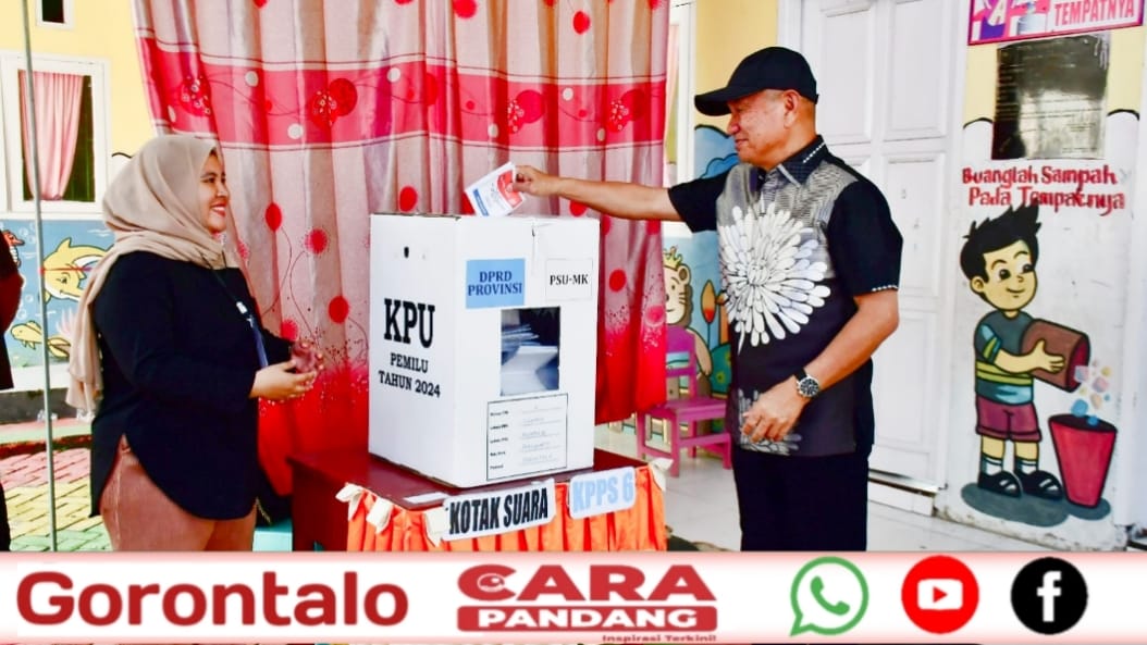 Bupati Pohuwato, Saipul A. Mbuinga, bersama istri tercinta, Selvi Mbuinga Monoarfa, menyalurkan hak suara mereka pada Pemungutan Suara Ulang (PSU) Anggota DPRD Provinsi Gorontalo di Tempat Pemungutan Suara (TPS) 03
