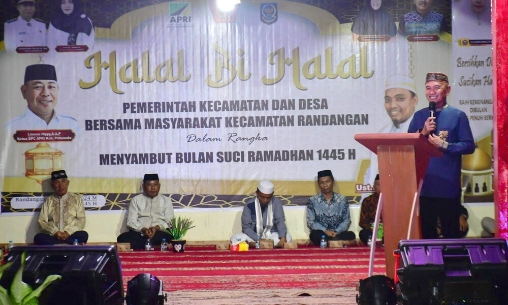 POHUWATO, CARAPANDANG.COM - Dalam rangka menyambut bulan suci Ramadan 1445 H, Bupati Pohuwato, Saipul A. Mbuinga turut hadir dalam acara halal bihalal yang diselenggarakan oleh pemerintah kecamatan dan desa bersama masyarakat Kecamatan Randangan, di halaman Kantor Kecamatan Randangan, Jum’at, (08/03/2024).