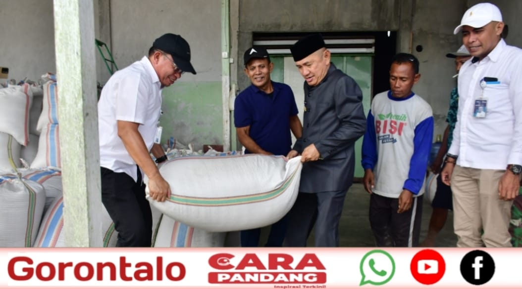 POHUWATO, CARAPANDANG - Bupati Pohuwato, Saipul A. Mbuinga, menghadiri sekaligus menyaksikan secara langsung proses pembelian gabah kering panen oleh pihak Bulog dari petani. Pembelian perdana oleh mitra Bulog kepada pengusaha gilingan UD. Bina Sarana sekaligus sebagai Ketua IP3A Taluduyunu, Umar Etango, ini menjadi langkah konkret pemerintah daerah dalam mendukung petani dan memastikan hasil panen mereka terserap dengan baik.
