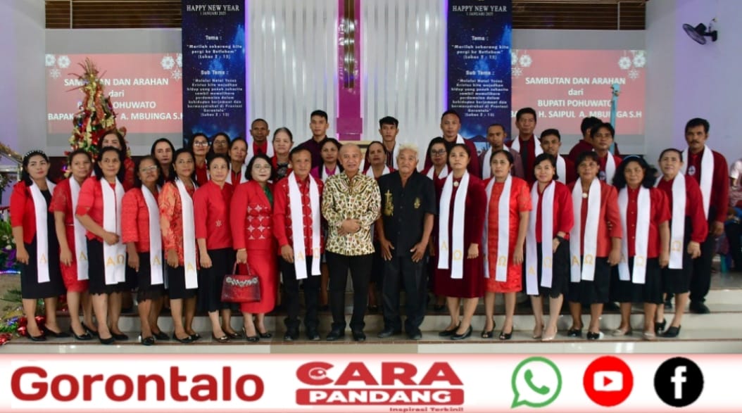 POHUWATO, CARAPANDANG - Perayaan Natal oleh umat Kristiani di GPIG Bethel Londoun, Kecamatan Popayato Timur turut dihadiri langsung Bupati Pohuwato, Saipul A. Mbuinga, Rabu, (25/12/2024).