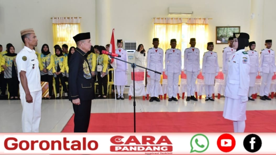 CARAPANDANG - Pengukuhan 30 Anggota Pasukan Pengibar Bendera Pusaka (Paskibaraka) tingkat Kabupaten Pohuwato dilakukan Bupati Pohuwato, Saipul A. Mbuinga di Gedung Panua Pohuwato, Kamis, (15/08/2024). Pengukuhan Paskibraka Pohuwato turut dihadiri Wakil Bupati Pohuwato, Suharsi Igirisa, Forkopimda Pohuwato, Sekda Iskandar Datau, para asisten, staf ahli bupati dan pimpinan OPD, hadir pula orang tua dari 30 Anggota Paskibraka.