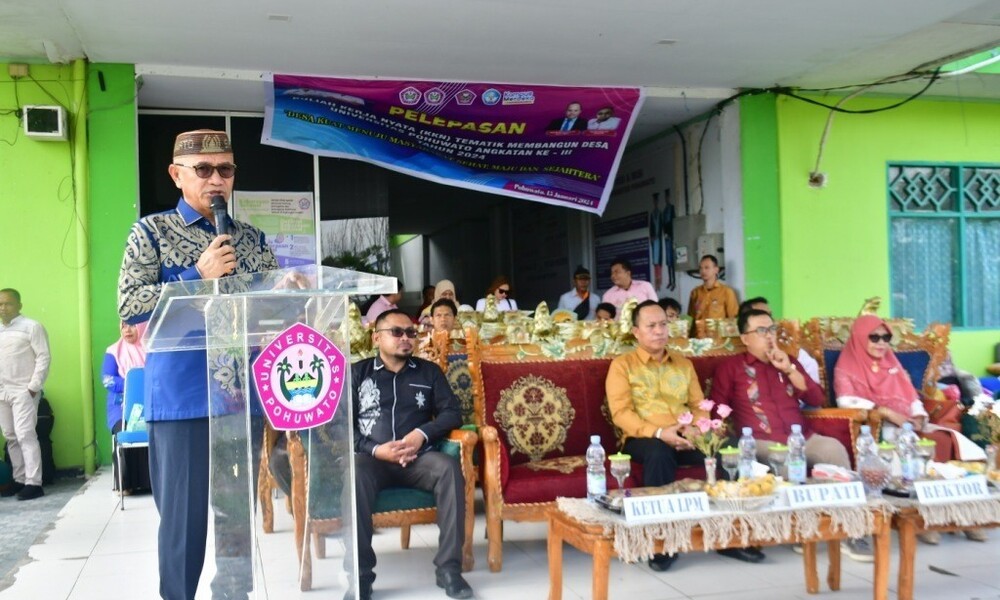POHUWATO, CARAPANDANG.COM - Bupati Pohuwato, Saipul A. Mbuinga secara resmi melepas 242 Mahasiswa Kuliah Kerja Nyata (KKN) tematik membangun desa Universitas Pohuwato (Unipo) angkatan ke-III tahun 2024 di halaman Unipo, Senin, (22/01/2024).