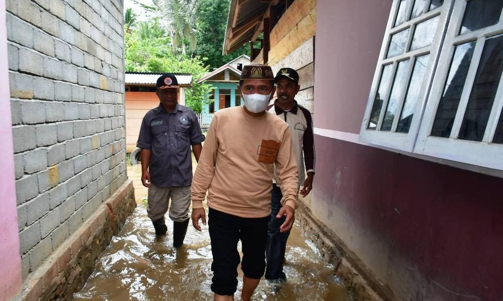 Beberapa titik terendam air dipantau langsung Bupati Pohuwato, Saipul A. Mbuinga yang didampingi Kepala Pelaksana Badan Penanggulangan Bencana Daerah, (BPBD) Pohuwato, Abdul Mutalib Dunggio dan camat setempat, Senin, (27/3/2023).