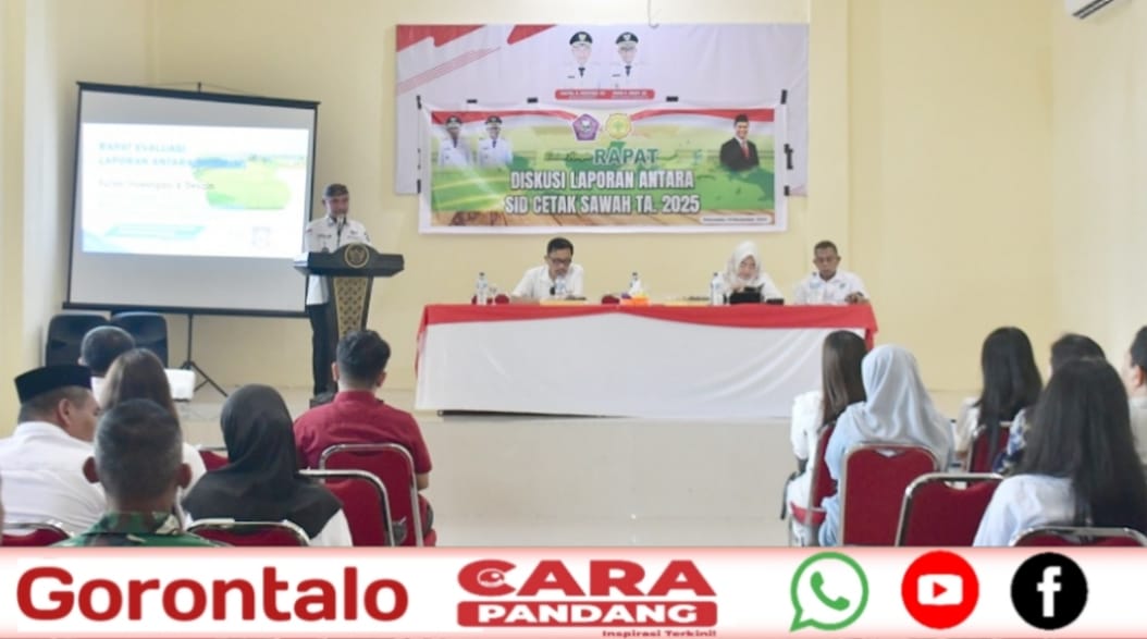 POHUWATO, CARAPANDANG - Bupati Pohuwato, Saipul A. Mbuinga, secara resmi membuka rapat evaluasi laporan antara (interim) survei investigasi dan desain (SID) cetak sawah Tahun Anggaran 2025 yang digelar di ruang rapat Gunung Pani, Kantor Bupati Pohuwato, Rabu (19/11/2025).