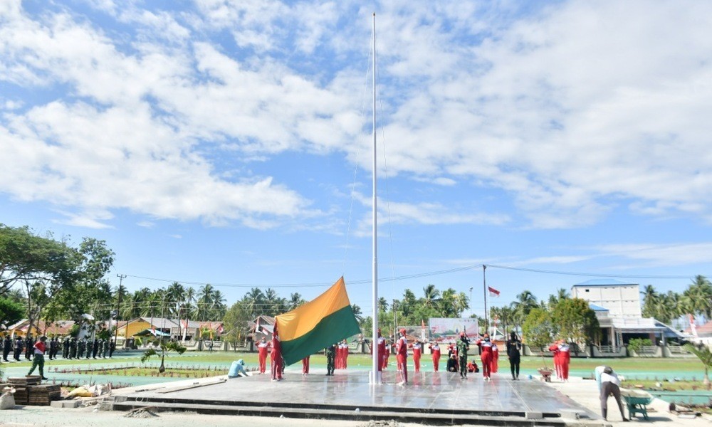 POHUWATO, CARAPANDANG.COM - Bupati Pohuwato, Saipul A. Mbuinga menyaksikan latihan dari pasukan pengibar bendera pusaka (Paskibraka) yang akan bertugas pada upacara detik-detik proklamasi dan upacara penurunan bendera pada 17 Agustus mendatang.