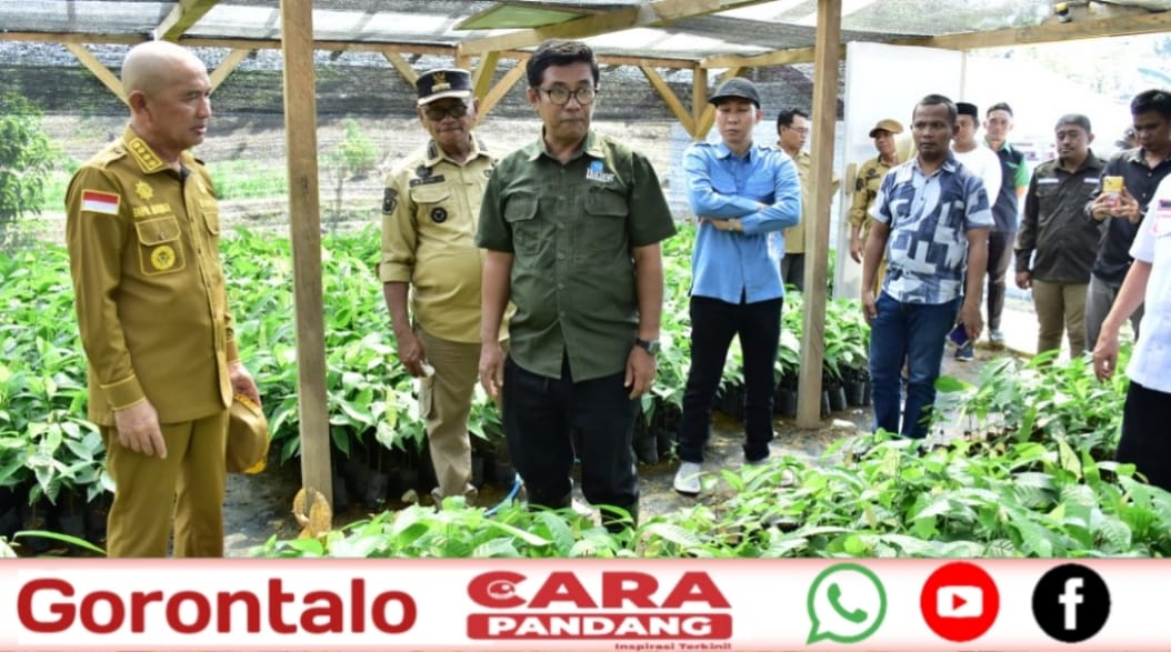 POHUWATO, CARAPANDANG - Bupati Pohuwato, Saipul A. Mbuinga, meninjau langsung Program Kakao Berkelanjutan Burung Indonesia Program Gorontalo yang berada di Desa Puncak Jaya, Kecamatan Taluditi, Selasa (11/11/2025).