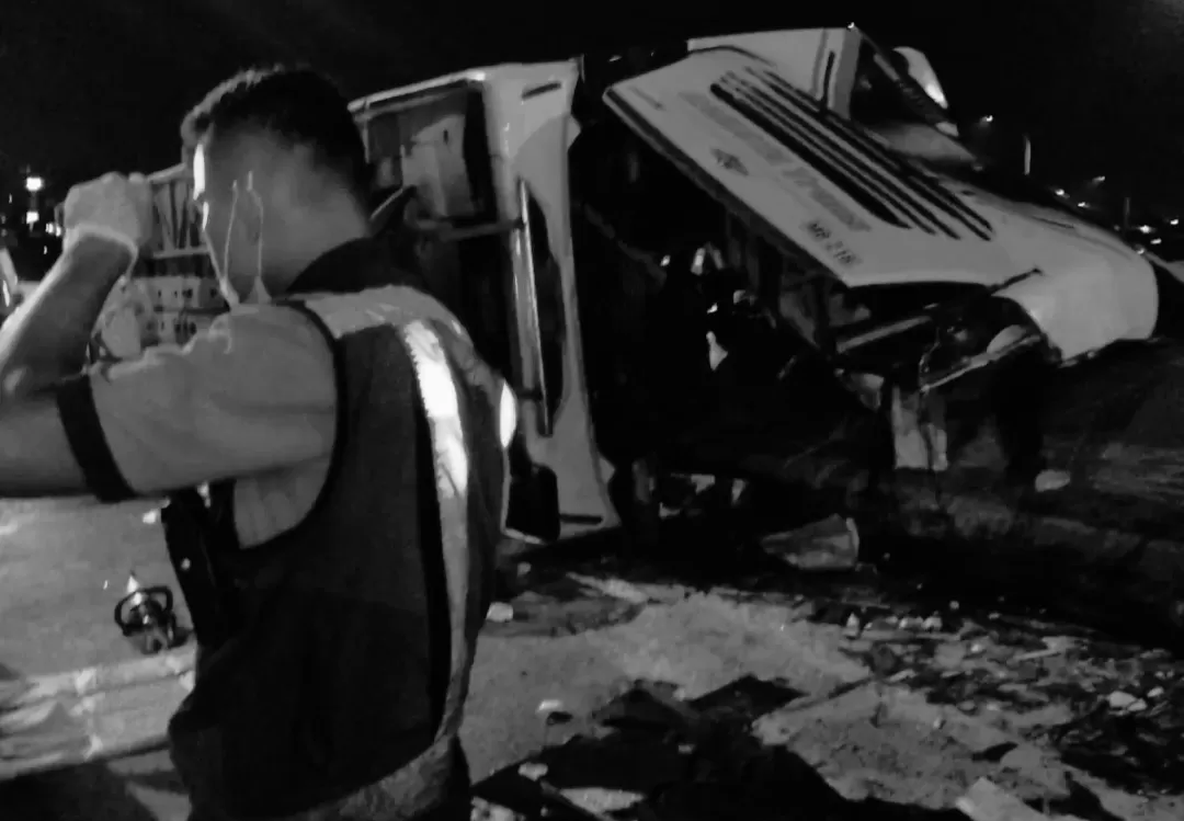 CARAPANDANG.COM- Sebuah bus PO Cahaya Trans yang mengangkut 34 penumpang terguling di ruas simpang susun exit tol Krapyak Kota Semarang, Senin dini hari, sekitar pukul 00.30 WIB, menewaskan setidaknya 15 orang.