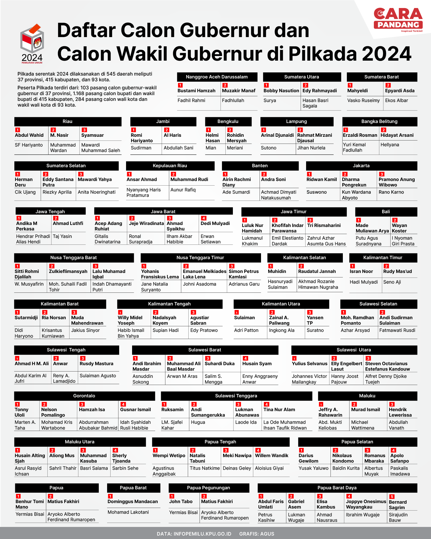 Beranda Infografis Daftar Calon Gubernur dan Calon Wakil Gubernur Pillada 2024