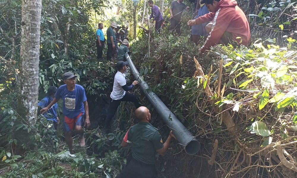 Selain mengerahkan masing-masing personel, perbaikan saluran air tersebut juga mendapat dukungan dari masyarakat sekitar. Terbukti, beberapa masyarakat pun ikut berjibaku melakukan perbaikan saluran air tersebut.