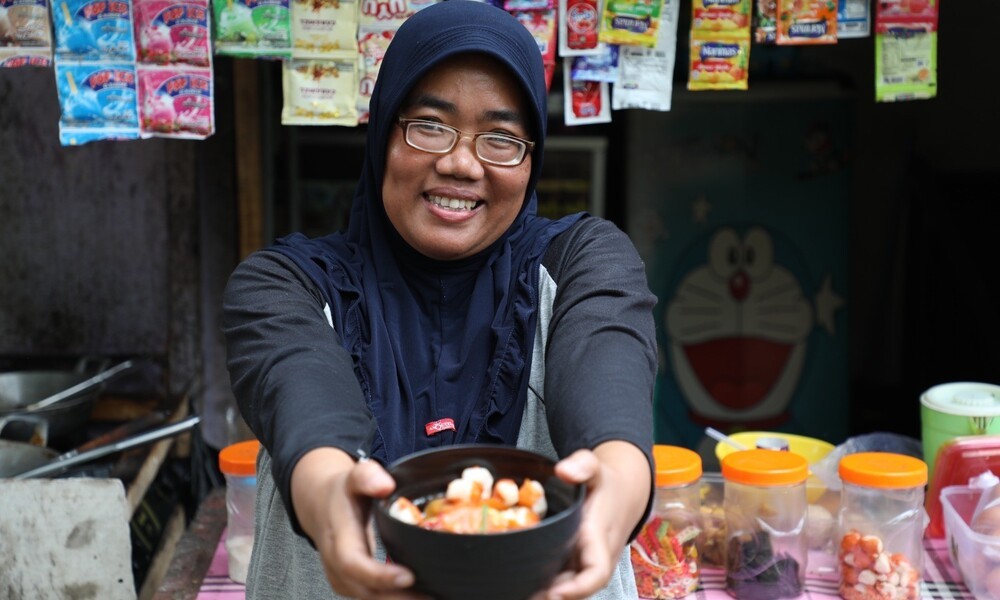 CARAPANDANG - Leni (40) sangat bersyukur, karena berkat program Pahlawan Ekonomi Nusantara (PENA) Kementerian Sosial, usahanya berkembang pesat. Warga Desa Cikadu, Kecamatan Sindangkerta, Kabupaten Bandung Barat ini semula berjualan seblak, yakni makanan khas Jawa Barat berupa kerupuk, baso, makaroni dan potongan ayam yang dimasak menjadi satu.