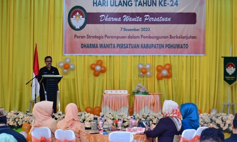 HUT yang dihadiri Sekda Pohuwato, Iskandar Datau, Ketua DPW Pohuwato, Ny. Suriyati Datau R. Abdjul, pimpinan OPD selaku penasehat unsur pelaksana DWP dan Sekcam selaku penasehat DWP Kecamatan, pengurus DWP Persatuan Provinsi, Ketua DWP Kota dan Kabupaten se-Provinsi Gorontalo, unsur TP.PKK Kabupaten dan Ketua serta pengurus organisasi wanita se-Kabupaten Pohuwato.