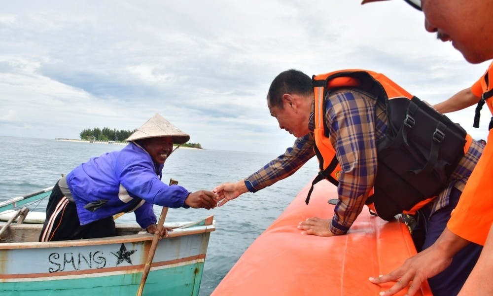 Saat itu juga Bupati Saipul Mbuinga menjulurkan tangannya ke nelayan dan disambut uluran tangan oleh nelayan tersebut. Saipul pun berpesan agar tetap melihat suasana saat melaut, karena saat ini cuaca kurang bersahabat, terkadang hujan dan kadang pula disertai angin kencang dari barat.