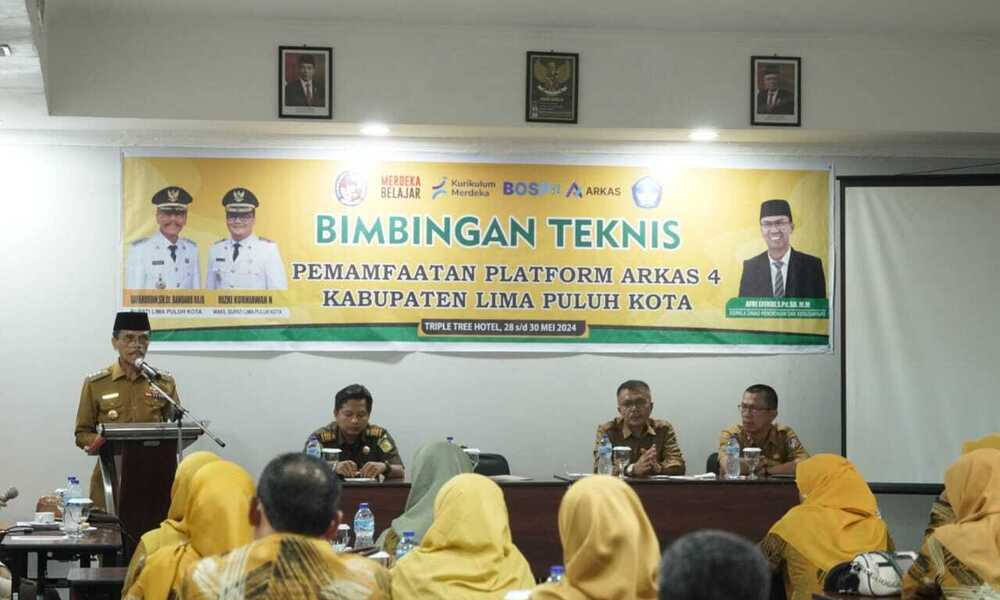 LIMA PULUH KOTA, CARAPANDANG - Dalam rangka mencapai pengelolaan dana BOSP (Bantuan Operasional Satuan Pendidikan) yang fleksibel, efektif, efisien, akuntabel dan transparan, Pemerintah Kabupaten Lima Puluh Kota melalui Dinas Pendidikan dan Kebudayaan melaksanakan kegiatan Bimbingan Teknis Aplikasi Arkas (Aplikasi Rencana Kegiatan dan Anggaran Sekolah) BOSP (Bantuan Operasional Satuan Pendidikan), selasa sore, (28/05/2024) di Ballroom Triple Tree Hotel.