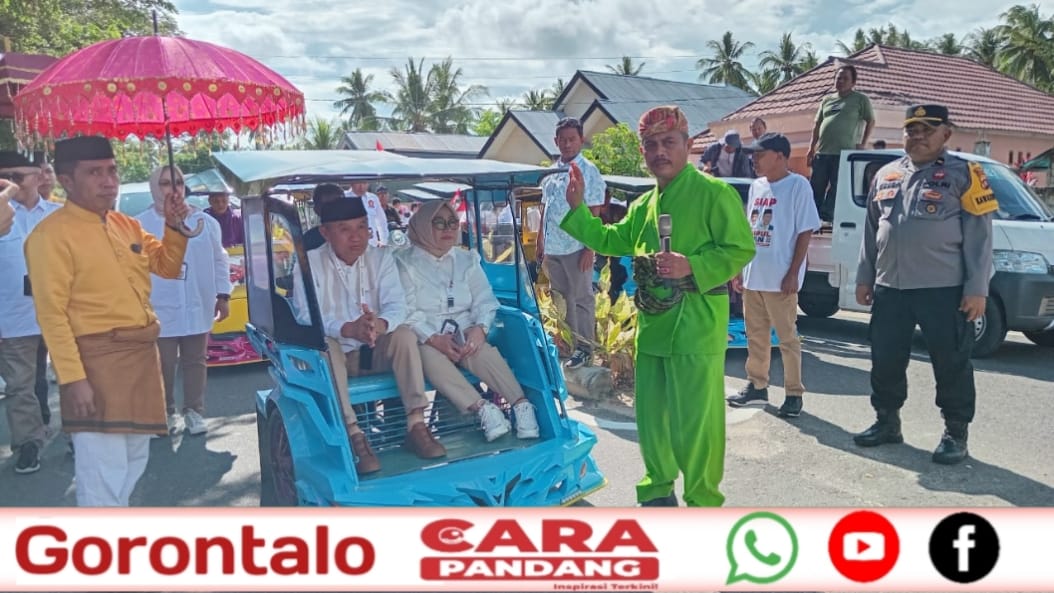 Dilepas dengan adat dari kediaman Adnan Mbuinga (Haji Pulu, sapaan akrab), di iringi lantunan shalawat menggunakan bentor bersama partai politik pengusung, pendukung dan Ketua Tim Pemenangan, Hamdi Alamri beserta simpatisan dan relawan disambut secara adat oleh Komisioner KPU Pohuwato, Selasa (27/08/2024) di Gedung B KPU Pohuwato.
