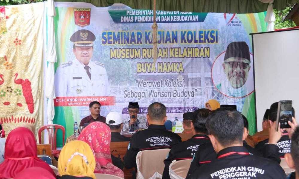 AGAM, CARAPANDANG.COM - Dinas Pendidikan dan Kebudayaan (Disdikbud) Kabupaten Agam gelar seminar Kajian Koleksi Museum Rumah Kelahiran Buya Hamka, yang dilaksanakan di Sungai Batang, Kecamatan Tanjung Raya, Selasa (14/11).