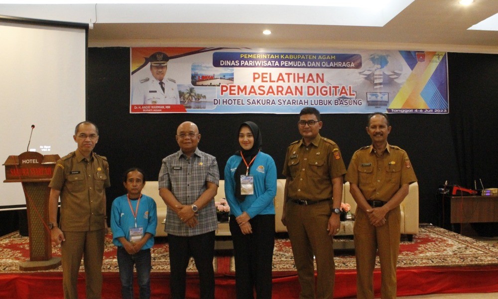 Pemerintah Kabupaten Agam melalui Dinas Pariwisata dan Pemuda Olahraga (Disparpora) Kabupaten Agam melaksanakan pembukaan Pelatihan Pemasaran Digital melalui Dana Alokasi Khusus (DAK) Non Fisik Dana Pelayanan Kepariwisataan Tahun Anggaran 2023.