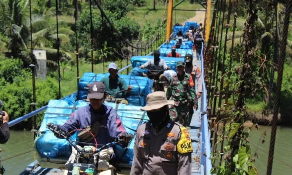CARAPANDANG - Anggota Kepolisian Resor (Polres) Pesisir Barat bersama Kodim Lampung Barat mengawal ketat distribusi logistik Pemilu 2024 ke daerah 3T (tertinggal, terdepan, dan terluar) di Kabupaten Pesisir Barat, Lampung, guna menyukseskan pemilu aman dan damai.