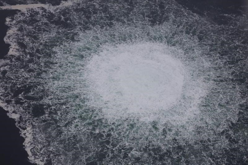 Foto dari udara yang disediakan oleh Penjaga Pantai Swedia pada 28 September 2022 ini menunjukkan kebocoran gas pada jalur pipa Nord Stream 1. (Xinhua/Penjaga Pantai Swedia)