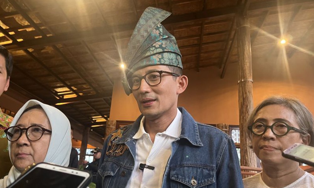 CARAPANDANG - Menteri Pariwisata dan Ekonomi Kreatif (Menparekraf) Sandiaga Salahuddin Uno mengenakan topi khas adat Melayu yang biasa disebut dengan 'Tanjak' sebagai upaya mendorong promosi produk dalam negeri. Sandiaga saat menghadiri bazar UMKM Batam Jazz and Fashion (Bajafash) di Batam, dirinya menjajal 'Tanjak' berwarna hijau yang bermakna "Putra Kayangan' yang biasa dipakai oleh kaum bangsawan Melayu.
