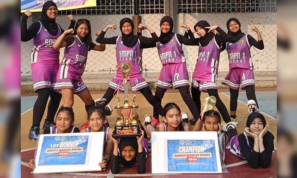CARAPANDANG - Prestasi membanggakan kembali ditorehkan oleh tim basket putri SMPN 1 Kota Bekasi. Tim basket putri SMPN 1 Kota Bekasi berhasil meraih juara 1 pada kejuaraan Basketboard Champion Elevate Your Game pada tanggal 1 s.d. 26 Mei 2024 di Kota Depok, Jawa Barat serta Olimpiade Olahraga Siswa Nasional (O2SN) Tingkat Kota Bekasi.
