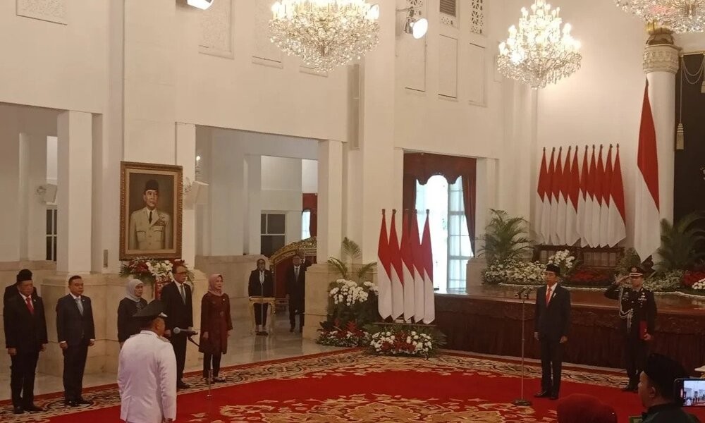 CARAPANDANG - Presiden Joko Widodo melantik Brigjen (Purn) TNI Edy Natar Nasution sebagai Gubernur Riau di Istana Negara, Jakarta, Senin.