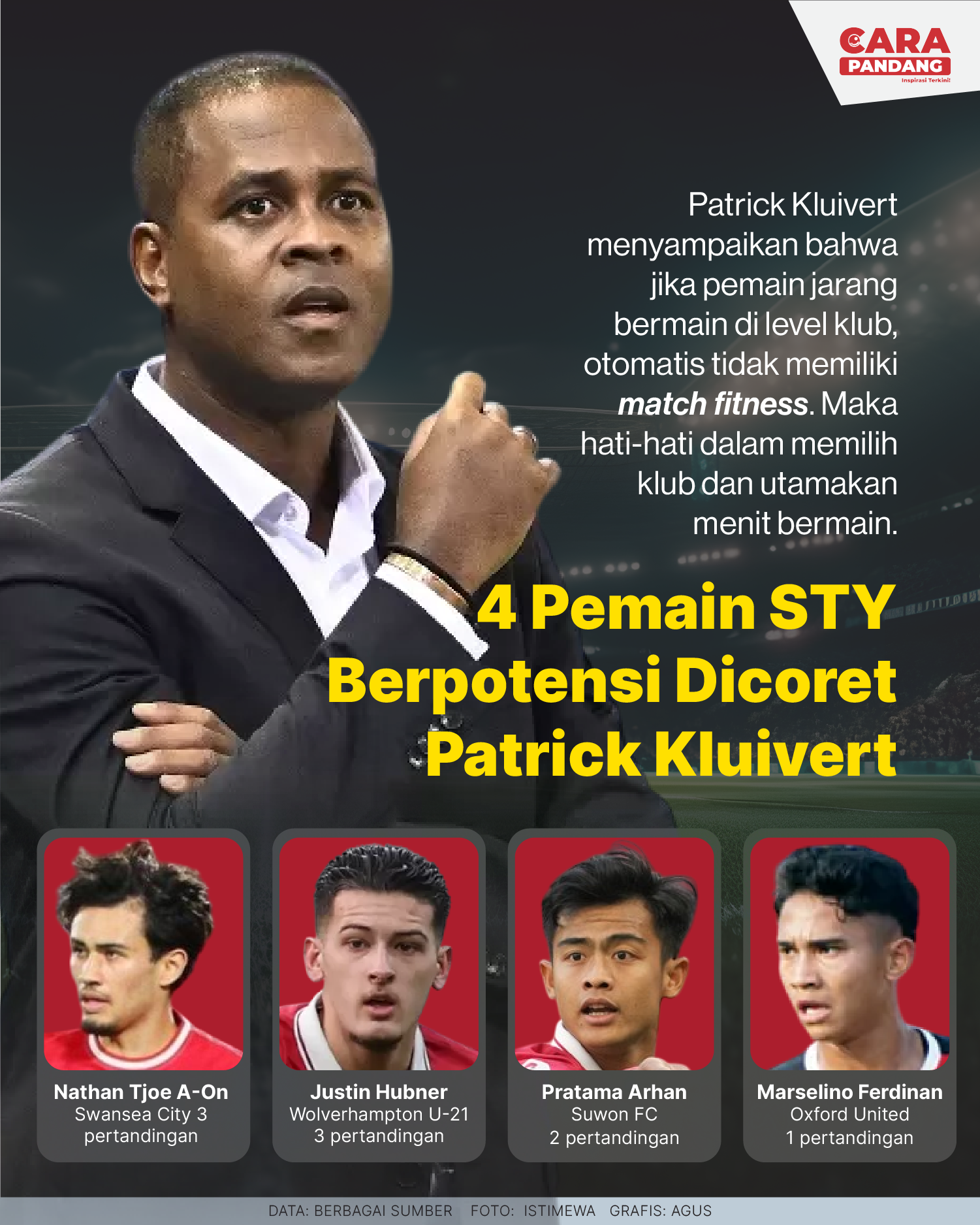 Beranda Infografis Empat Pemain Era STY Berpotensi Dicoret Patrick Kluivert Infografis Empat Pemain Era STY Berpotensi Dicoret Patrick Kluivert Penulis Amira Izzati - 15 Januari 2025 14:10 0 CARAPANDANG - Empat Pemain Era STY Berpotensi Dicoret Patrick Kluivert Tags Berita Sebelumnya Pani Gold Project Ikut Penanaman Pohon Serentak, Dukung Hutan Lestari Berita Berikutnya Indonesia Dalam Dilema Misi Perdamaian Dunia LEAVE A REPLY Cancel reply Comment: Please enter your comment! Name:* Please enter your name here Email:* You have entered an incorrect email address! Please enter your email address here Website: Save my name, email, and website in this browser for the next time I comment. Berita Teratas Kisah Ajaib Nabi Sulaiman dan Anak yang Berbakti kepada Orang Tua 8 Cara Merawat Kucing Kesayangan Agar Tubuhnya Selalu Sehat Minuman yang Mampu Redakan Batuk yang Menganggu Manfaat Ajaib Bawang Putih Bagi Kesehatan 8 Cara Menjaga Kesehatan Gigi dan Mulut yang Efektif Berita Terkait Berita Terkait Wajah Baru PP Tunas: Garda Terdepan Perlindungan Anak Indonesia Zoel Rachman - 31 Maret 2026 09:42 MBG 5 Hari Sepekan Masih Wacana Maliq - 30 Maret 2026 11:49 Presiden Ingin Semua Kendaraan Dikonversi ke Listrik Maliq - 30 Maret 2026 11:48 Kewaijiban PSE Terhadap Pengguna Anak Maliq - 30 Maret 2026 11:15