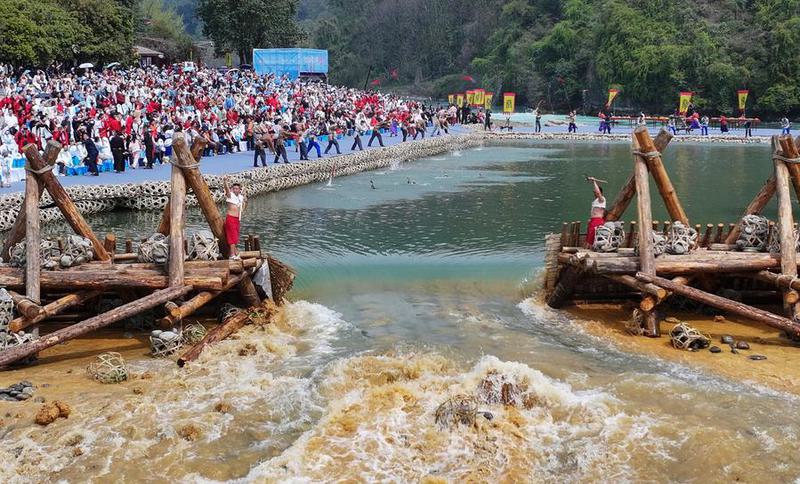Orang-orang berpartisipasi dalam sebuah festival pelepasan air yang diadakan di Dujiangyan, Provinsi Sichuan, China barat daya, pada 4 April 2025. (Xinhua/Jiang Hongjing)