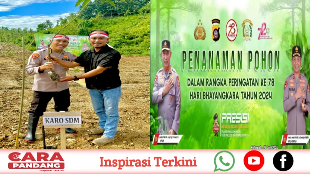 POHUWATO, CARAPANDANG - Forum Komunitas Hijau (FKH) Kabupaten Pohuwato, ikut serta dan mengapresiasi kegiatan Bakti Sosial dan Bantuan Sosial (Bansos) serta penanaman pohon se-Indonesia dalam rangka Hari Ulang Tahun (HUT) ke-78 Bhayangkara oleh Polda Gorontalo dan Kepolisian Resort (Polres) Pohuwato.