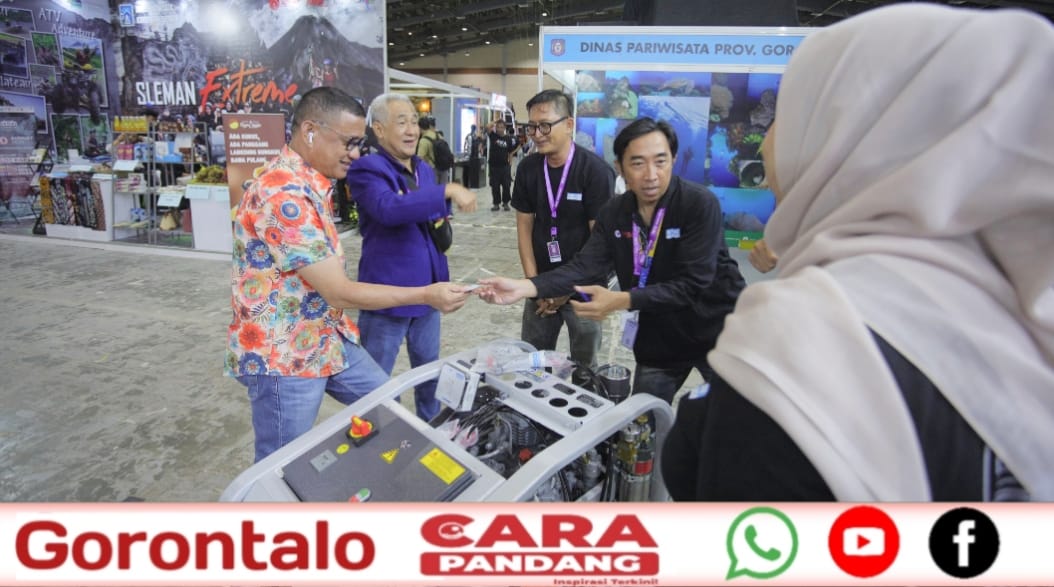Selain menyambangi booth Kementerian Pariwisata RI, Ketua POSSI (Persatuan Olahraga Selam Seluruh Indonesia) Provinsi Gorontalo ini juga memberikan dukungan penuh saat mendatangi stand Dinas Pariwisata Provinsi Gorontalo yang turut ambil bagian dalam gelaran DXI 2025.