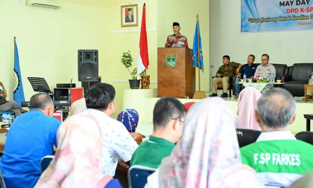 Selanjutnya Gubernur Mahyeldi mengajak para Buruh untuk berperan aktif menjaga pertumbuhan ekonomi dan iklim investasi daerah melalui peningkatan kualitas dan produktivitas kerja.