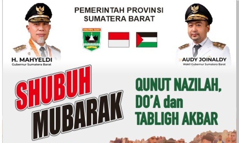 "Biasanya Subuh Mubarakah ini diwajibkan untuk seluruh ASN Pemprov Sumbar, pada hari Minggu pertama setiap bulannya, selepas Salat Subuh di Masjid Raya Sumbar. Namun untuk minggu ini, kita minta seluruh masyarakat hadir dan turut memanjatkan doa dan mengulurkan donasinya untuk saudara-saudara kita di Palestina," ucap Gubernur lagi.