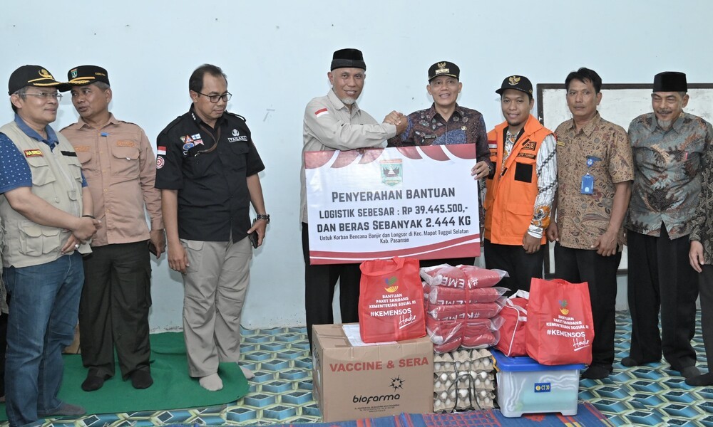 Gubernur Sumatera Barat (Sumbar), Mahyeldi Ansharullah, mengantar langsung bantuan logistik bagi warga Kecamatan Mapat Tunggul Selatan, Kabupaten Pasaman, yang terdampak bencana banjir dan longsor beberapa hari yang lalu.