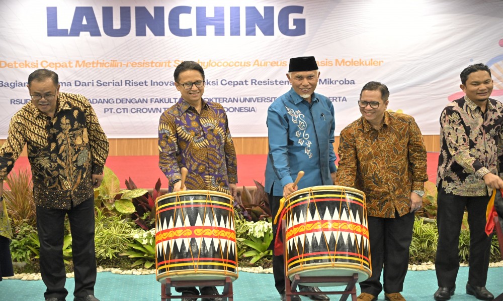 SUMBAR, CARAPANDANG.COM - Gubernur Sumatera Barat (Sumbar), Mahyeldi Ansharullah, mendampingi Menteri Kesehatan (Menkes) RI, Budi Gunadi Sadikin, dalam kunjungan kerja sehari di Kota Padang, Jumat (23/02/2024). Salah satu agenda penting yang diikuti ialah peluncuran Panel Deteksi Cepat Methicillin-restistant Staphylococcus aureus (MRSA) berbasis Molekuler di Rumah Sakit Umum Pusat (RSUP) Dr. M. Djamil Padang.