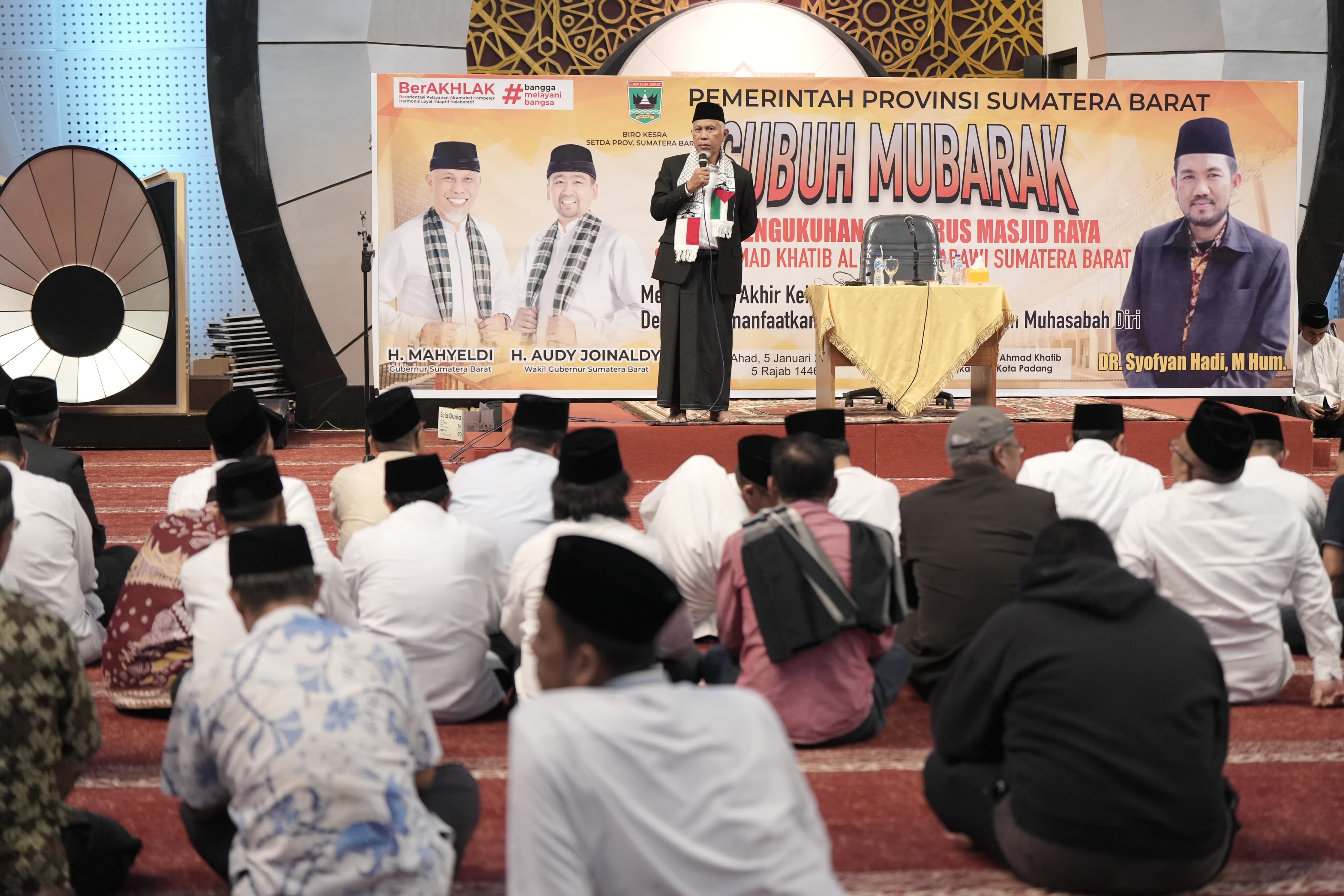 SUMBAR, CARAPANDANG - Gubernur Sumatera Barat (Sumbar), Mahyeldi Ansharullah mengukuhkan pengurus baru Masjid Raya Syech Ahmad Khatib Al Minangkabawi periode 2024-2027, di Padang, Minggu (5/1/2025).