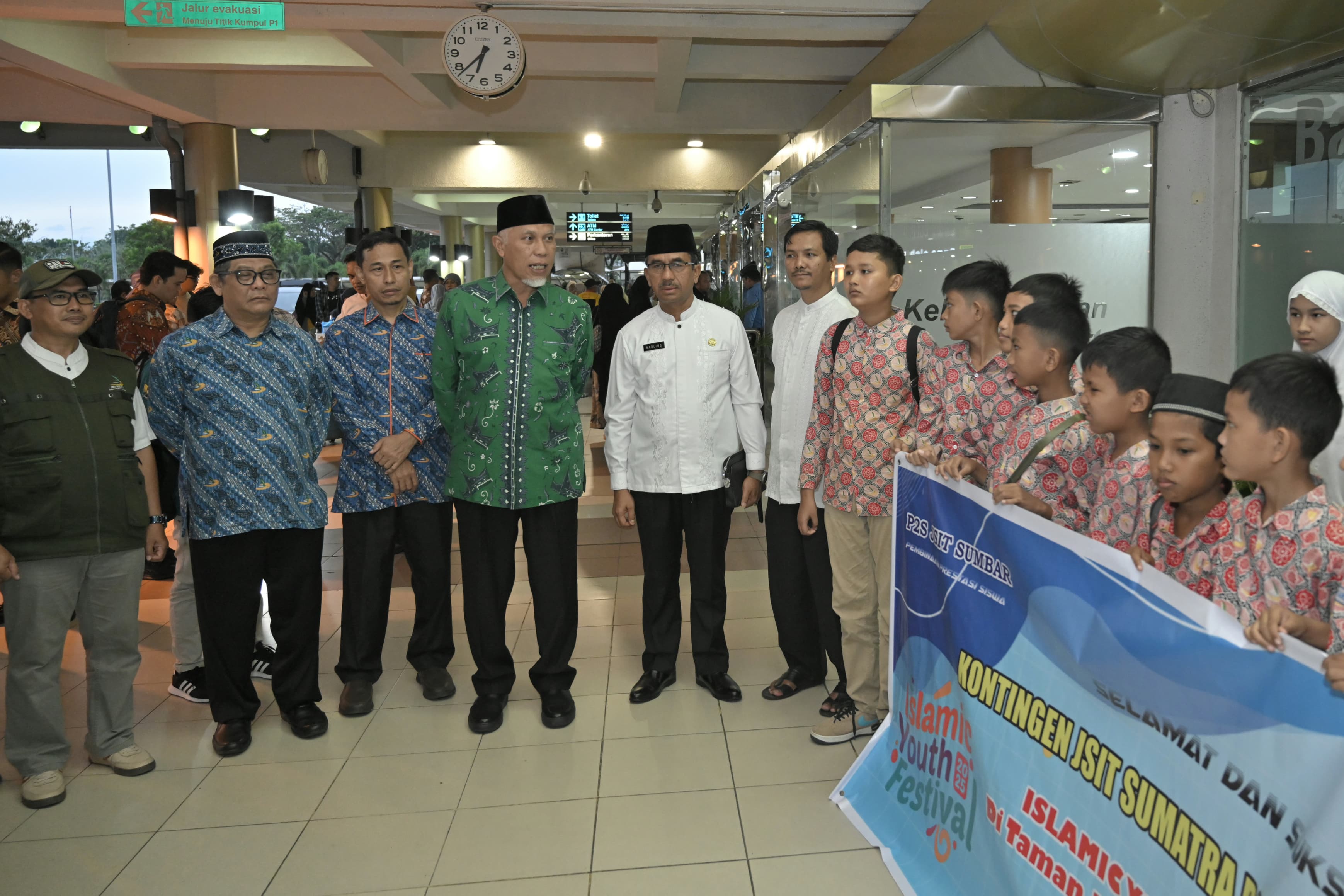 SUMBAR, CARAPANDANG - Gubernur Sumatera Barat (Sumbar), Mahyeldi Ansharullah, melepas 22 pelajar Sekolah Dasar (SD) Kontingen Jaringan Sekolah Islam Terpadu (JSIT) Sumbar, yang akan mengikuti perlombaan pada Islamic Yout Festival di Jakarta, Jumat (14/02/2025) di Bandara Internasional Minangkabau (BIM).