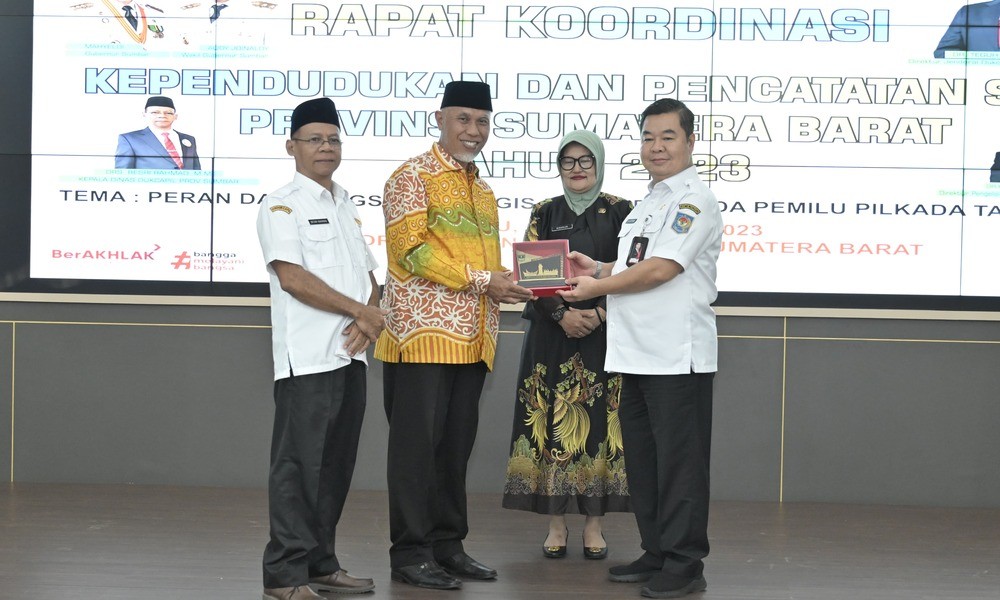 Hal itu disampaikan Gubernur Mahyeldi saat mengikuti Rapat Koordinasi (Rakor) Kependudukan dan Pencatatan Sipil Provinsi Sumatera Barat Tahun 2023, di Auditorium Istana Gubernur Sumbar, Rabu (06/09/2023). Hadir dalam rakor tersebut, Dirjen Kependudukan dan Pencatatan Sipil Kemendagri Teguh Setyabudi dan Direktur Pengelolaan Informasi Administrasi Kependudukan Handayani Ningrum.