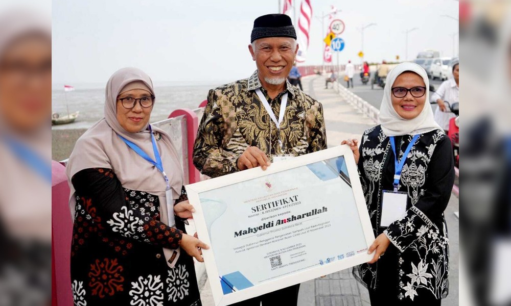 Penghargaan tersebut diterima langsung oleh Gubernur Mahyeldi dari Menteri KKP Sakti Wahyu Trenggono saat acara puncak apresiasi Gerakan Nasional Bulan Cinta Laut (BCL) di Pantai Kenjeran, Surabaya, Jumat (10/11/2023).