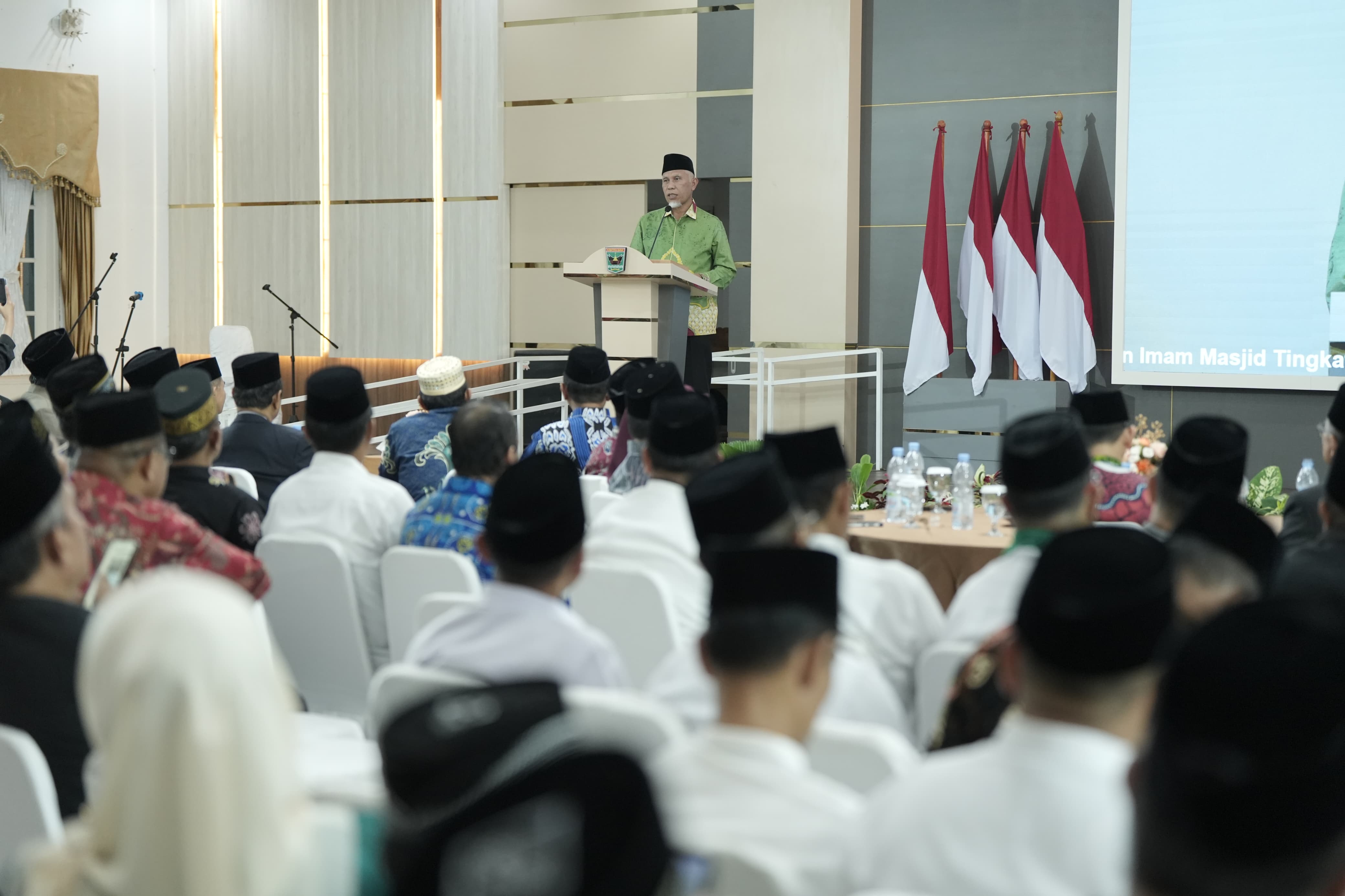 SUMBAR, CARAPANDANG - Gubernur Sumatera Barat (Sumbar), Mahyeldi Ansharullah, menghadiri kegiatan pelantikan pengurus Ittihad Persaudaraan Imam Masjid (IPIM) se-Sumbar sekaligus silaturahmi ormas keagamaan dengan pemerintah yang diselenggarakan oleh Kantor Wilayah Kementerian Agama (Kemenag) Sumbar di Auditorium Gubernuran, Sabtu malam (15/2/2024).