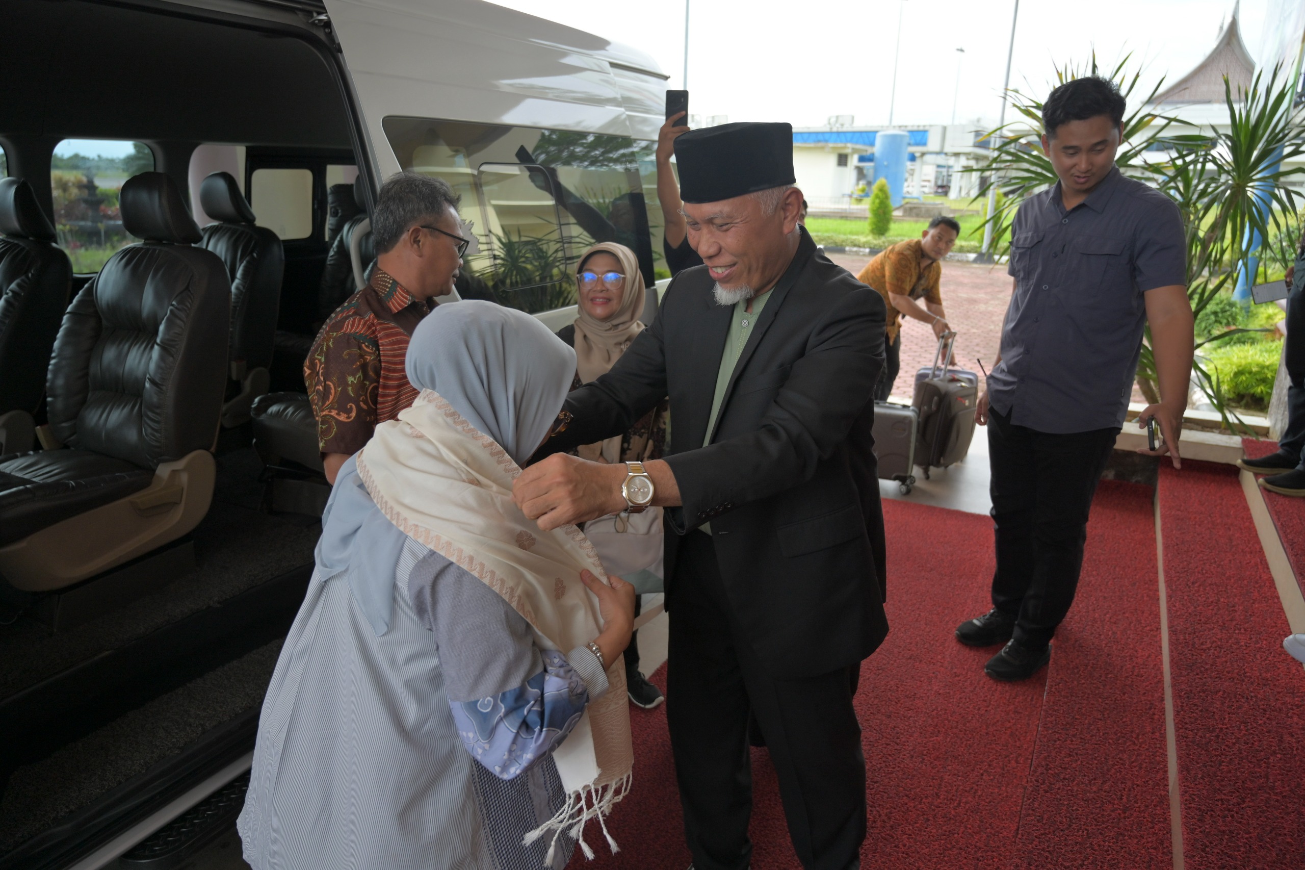 SUMBAR, CARAPANDANG - Gubernur Sumatera Barat (Sumbar) Mahyeldi Ansharullah menyambut kedatangan Menteri Pemberdayaan Perempuan dan Perlindungan Anak (PPPA) Republik Indonesia, Arifatul Choiri Fauzi di Bandara Internasional Minangkabau (BIM), Kabupaten Padang Pariaman, Selasa sore (17/02/2026).