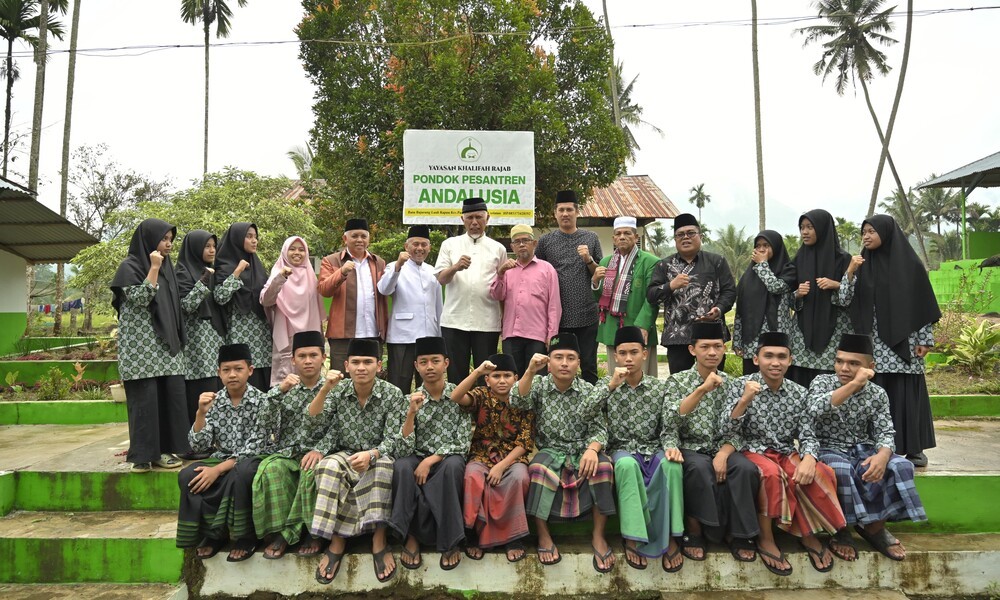 SUMBAR  CARAPANDANG.COM - Gubernur Sumatera Barat (Sumbar) Mahyeldi Ansharullah serahkan bantuan bibit ikan untuk Pondok Pesantren (Ponpes) Andalusia, Batu Bajarang, Nagari Luak Kapau Kec. Pauh Duo, Kabupaten Solok Selatan, Sabtu (10/2/2024).