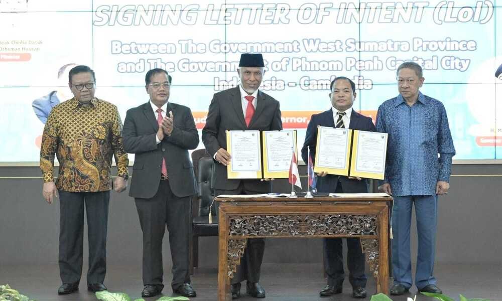Gubernur Sumatera Barat, Mahyeldi Ansharullah menandatangani Letter Of Intent (LOI) kerjasama antara Provinsi Sumatera Barat (Sumbar) dengan Provinsi Phnom Penh, Kamboja untuk bidang pendidikan, perdagangan, pariwisata, dan budaya.