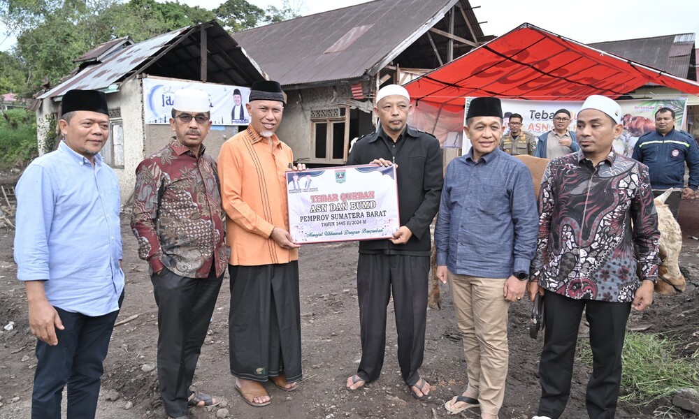 Gubernur mengawali kegiatan Tebar Qurban di Tanah Datar dengan ibadah dan tausiah subuh di Masjid Ubudiah Perambahan. Ia menyebutkan, hewan qurban yang diserahkan merupakan sumbangan dari ASN Pemprov Sumbar dan BUMD, dengan total bantuan 78 ekor sapi dan lima ekor kambing.
