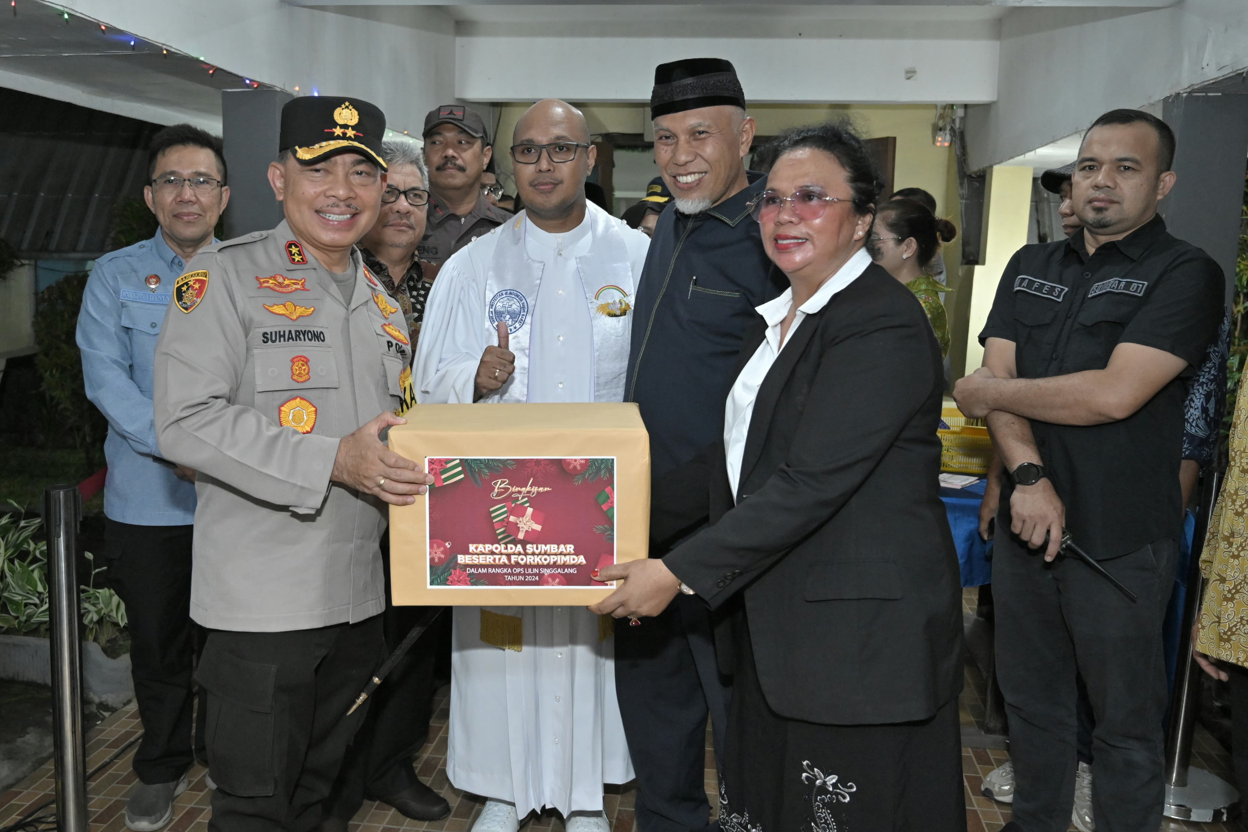 SUMBAR, CARAPANDANG - Gubernur Sumatera Barat (Sumbar), Mahyeldi Ansharullah bersama Kapolda Sumbar, Irjen Pol Suharyono memimpin peninjauan pengamanan Malam Natal 2024 di sejumlah Pos Pengamanan dan Gereja di Kota Padang, Selasa (24/12/2024). Mahyeldi menekankan, kenyamanan bagi seluruh warga yang beribadah dan merayakan Natal merupakan tanggung jawab seluruh lapisan masyarakat.