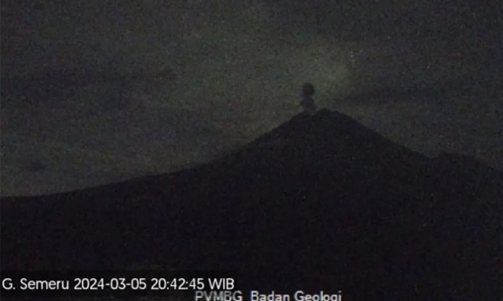 CARAPANDANG - Gunung Semeru yang berada di perbatasan Kabupaten Lumajang dan Malang, Jawa Timur, kembali erupsi dengan letusan setinggi 700 meter di atas puncak pada Jumat pukul 03.31 WIB.
